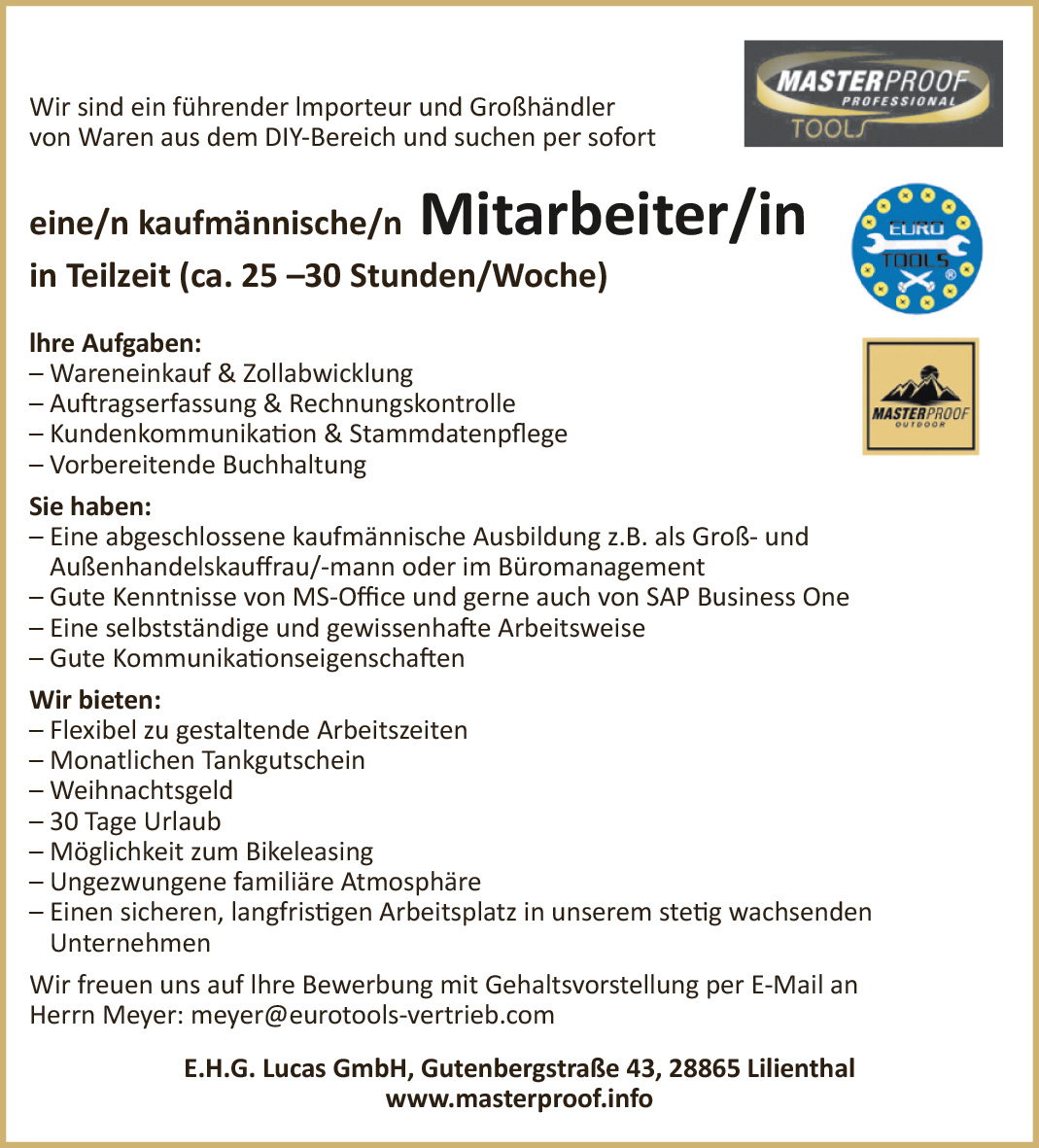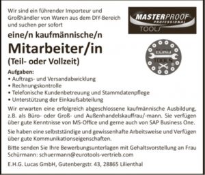 Seit über 40 Jahren stehen wir dem Handel mit unserem umfangreichen Sortiment der Marken „Euro Tools“ und „Masterproof Professional“ zur Seite.